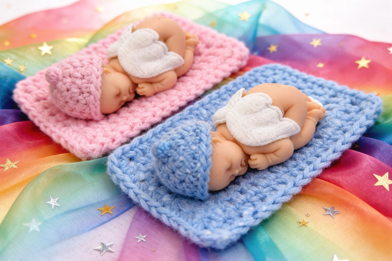Diese zart modellierte Babyfigur aus Fimo zeigt sowohl die Zerbrechlichkeit als auch die Würde deines Sternenkindes.