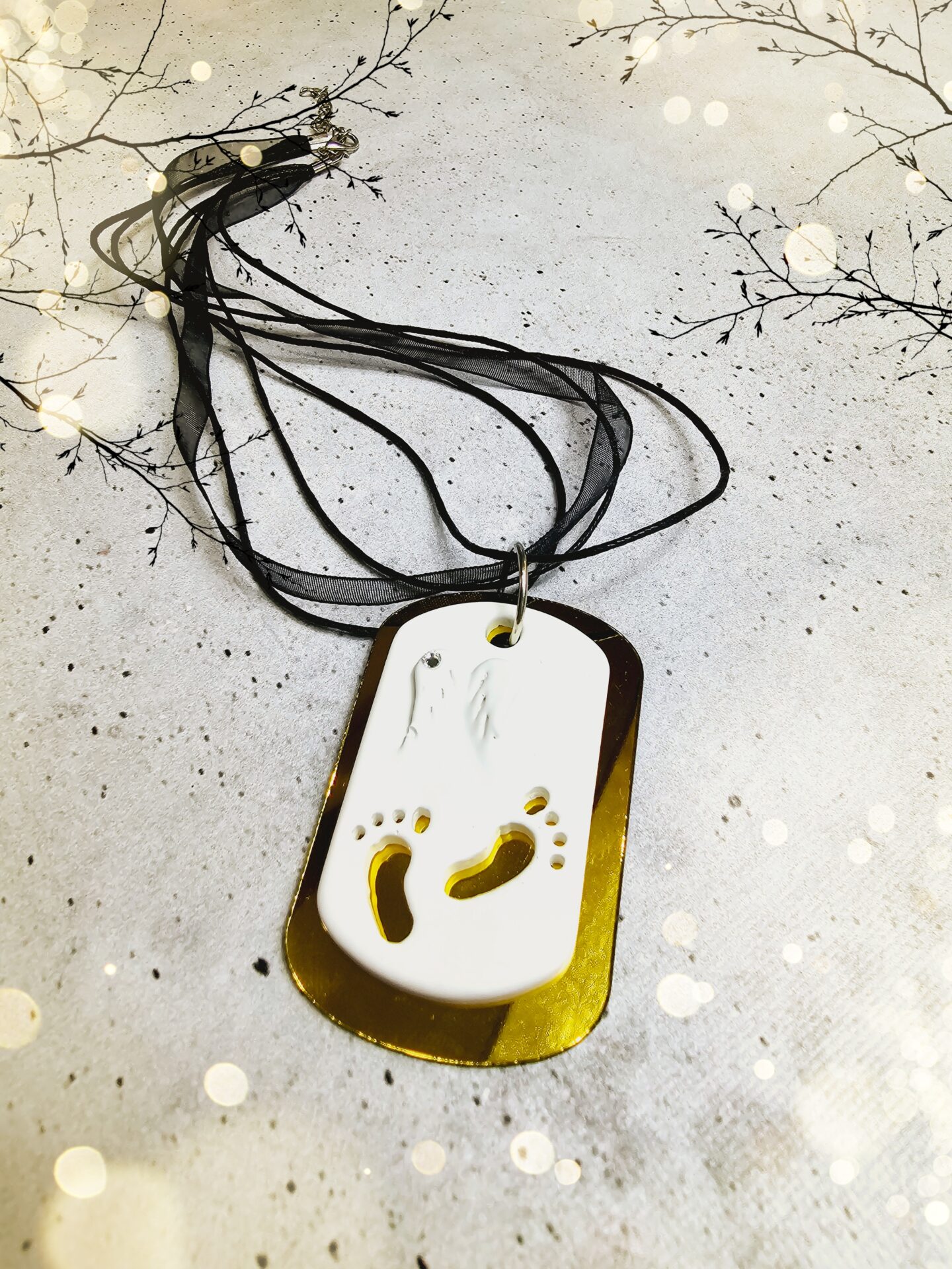 Produkt enthält: Acrylplatte/Anhänger (Optik wählbar), Gipsplättchen mit Fußabdruck und Engelsflügel mit Steinchen